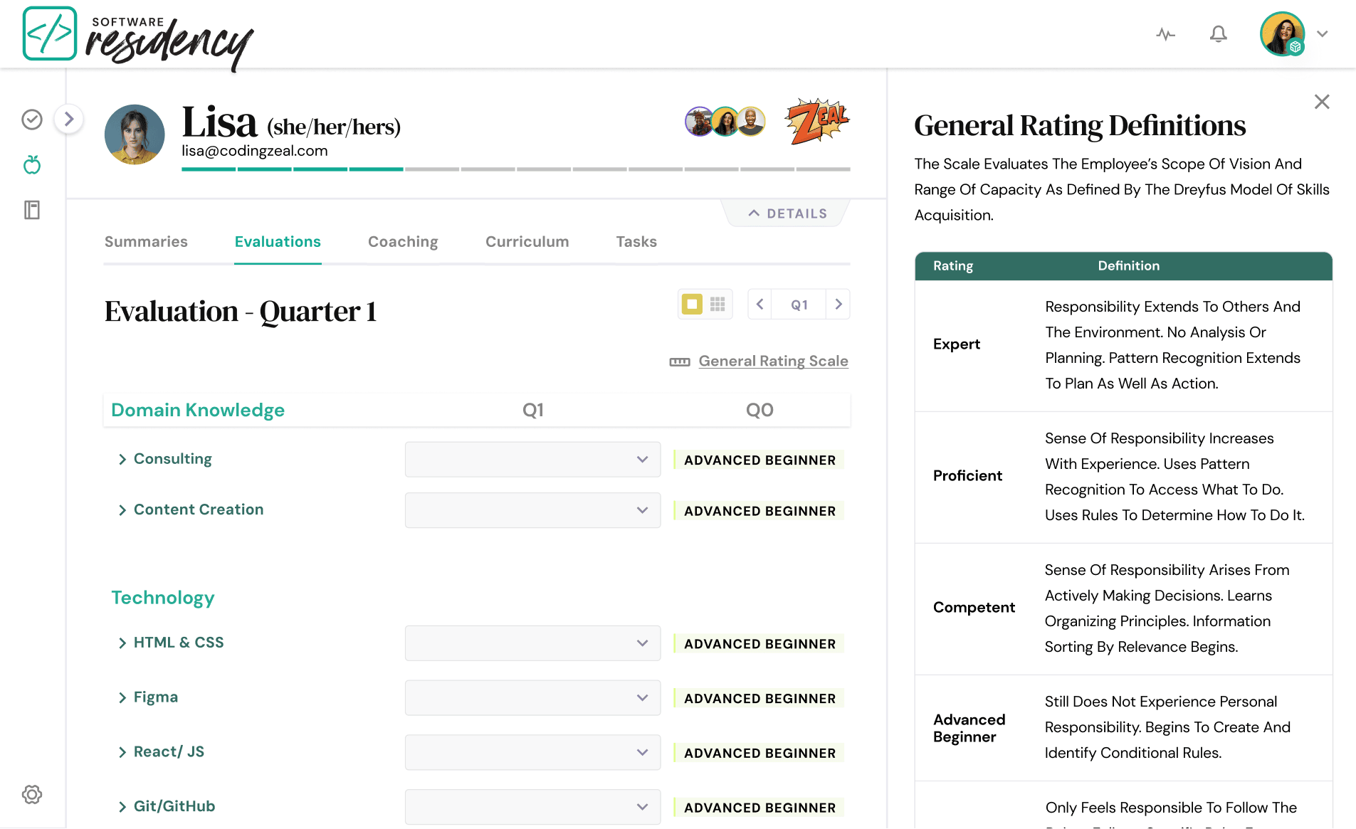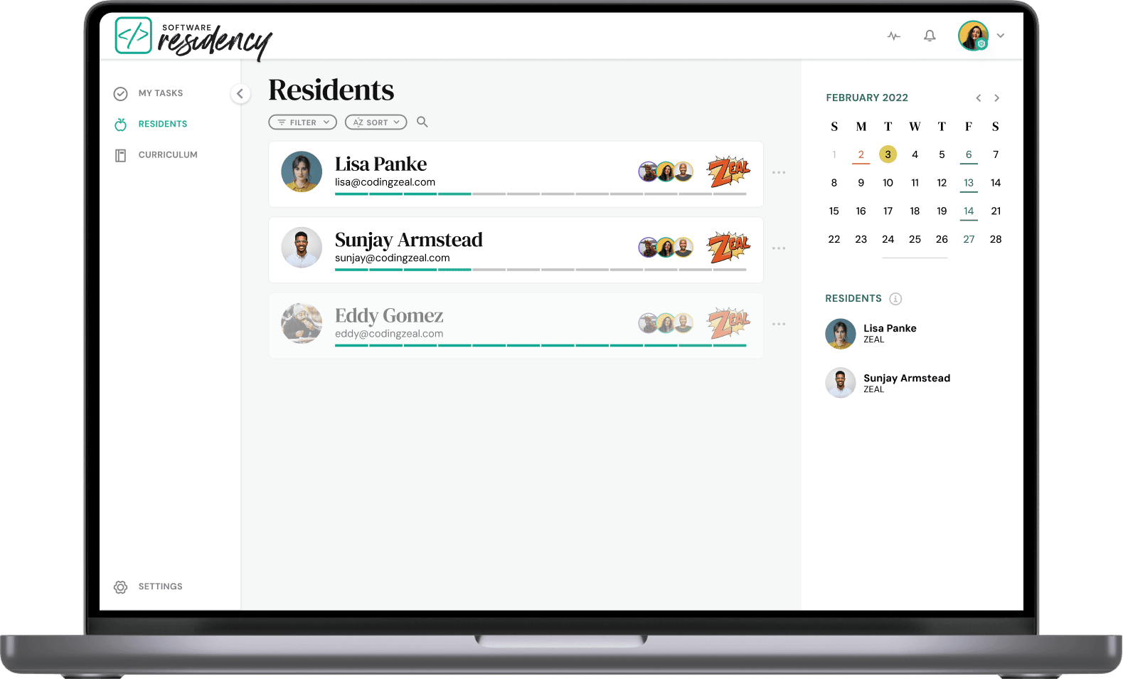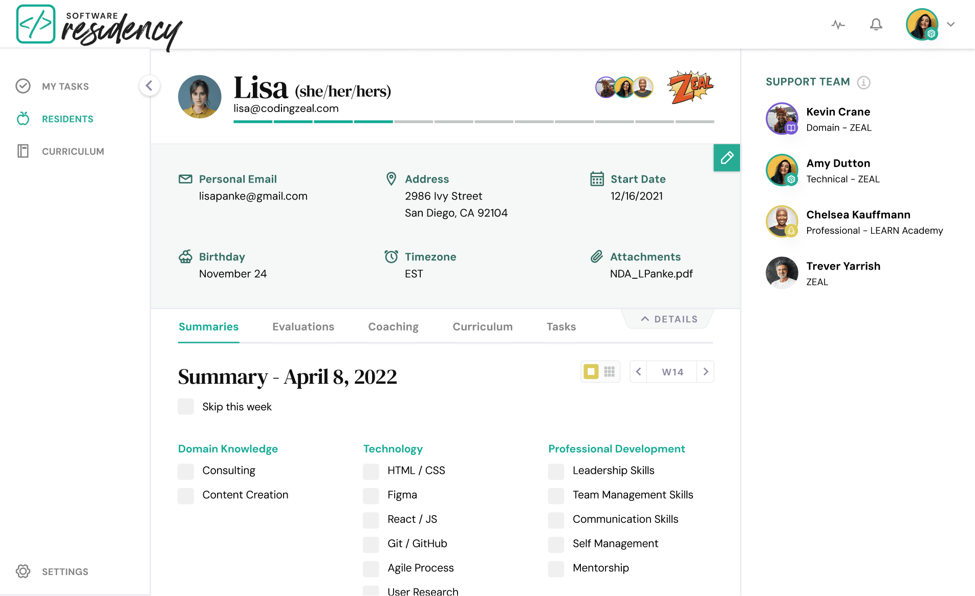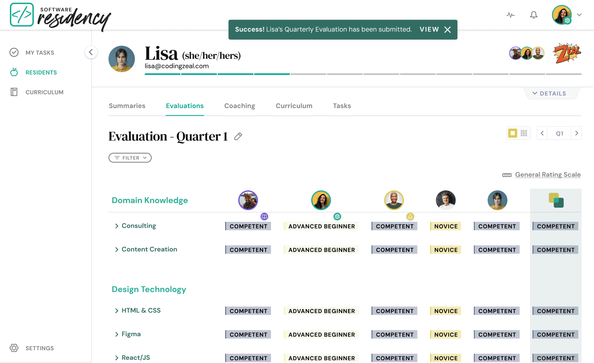 The Software Residency program — created by ZEAL and Learn Academy — aimed to close the skill gap between junior and senior engineers through structured mentorship. The mentorship experience relied on informal workflows and disconnected tools, making it difficult for mentors to track resident development and provide consistent, valuable feedback.