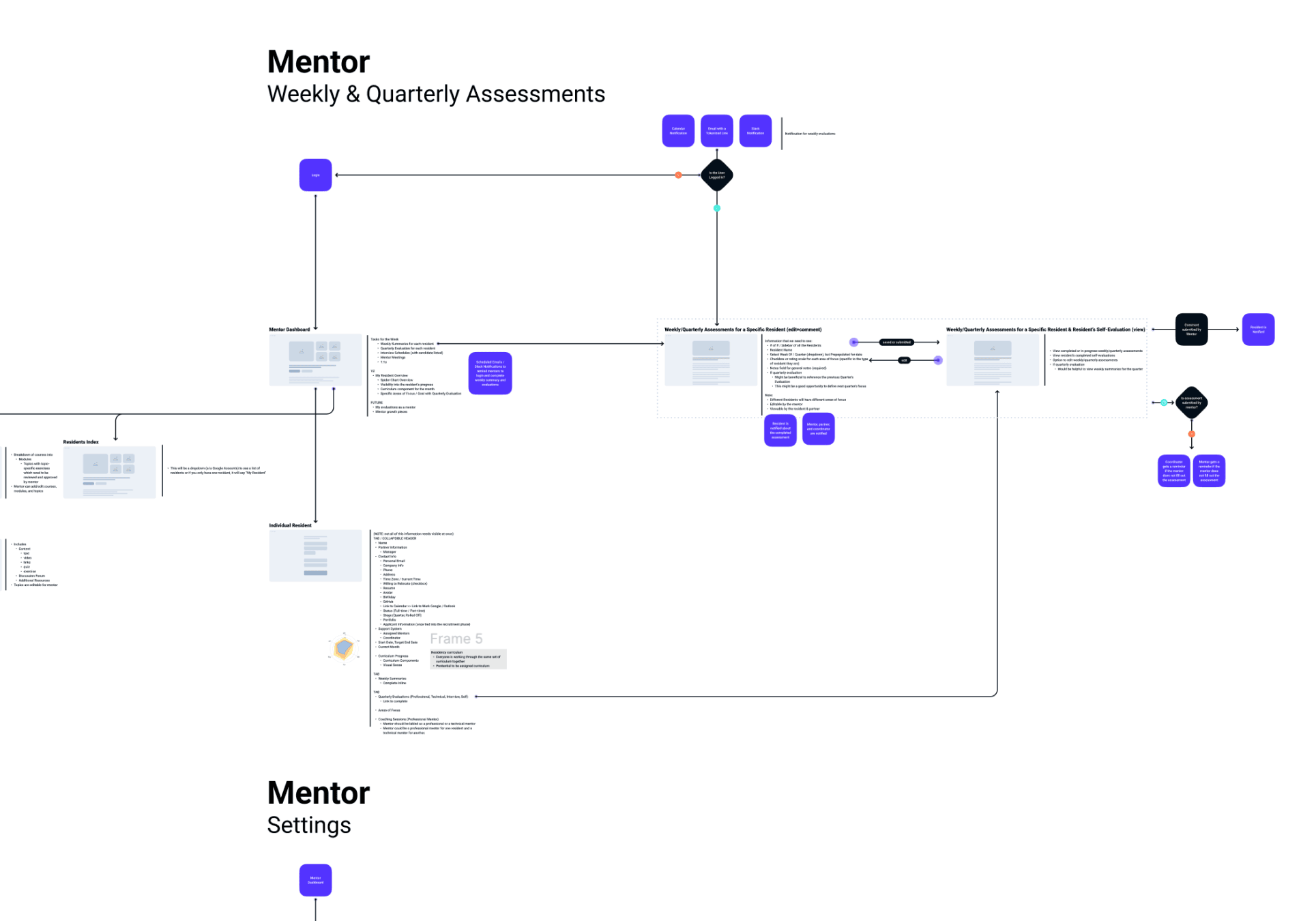 Outline of mentor flows showing key transitions & navigation logic before prototyping.